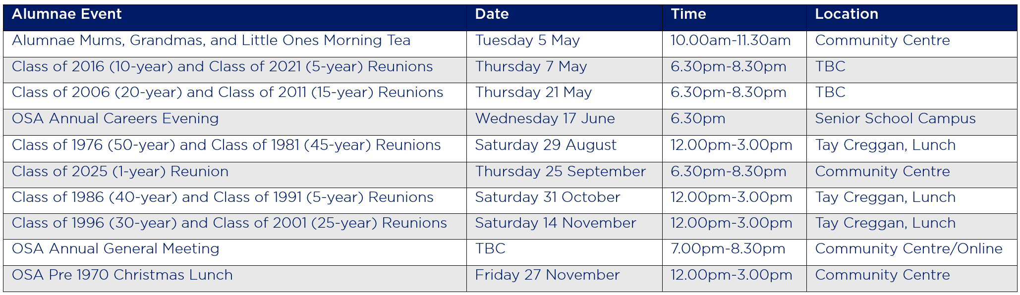 The Old Strathconians’ Association (OSA) is committed to fostering relationships between past students and the broader Strathcona community. The OSA Committee is elected annually and works closely with the School to facilitate events and activities to provide opportunities for past students to stay connected and reconnect with the school and each other.